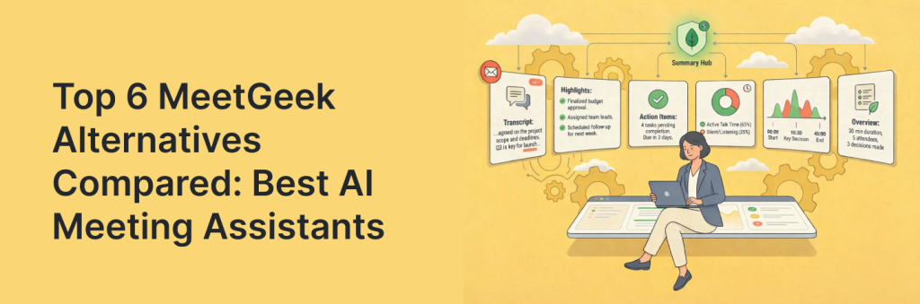 In this comparison, we’ll break down six leading MeetGeek alternatives, show what each tool does best (and where it falls short), and map them to real workflows, so you can pick the right assistant based on accuracy, collaboration needs, integrations, and how much follow-up you want automated.
