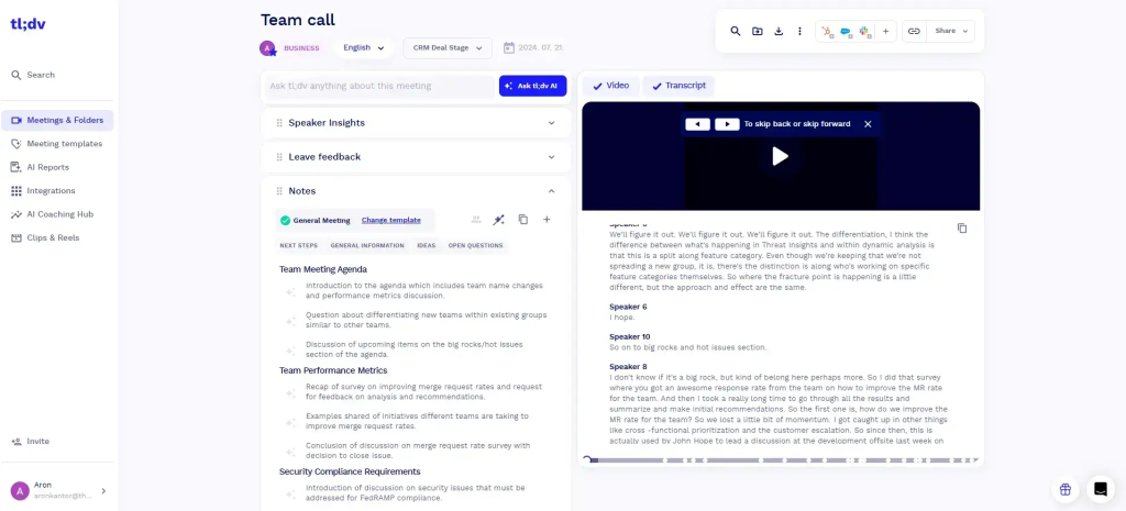 Agencies and B2B SaaS teams have different needs than internal product meetings. They juggle clients, partners, deadlines, and revenue. The right tl;dv alternatives help you keep scope tight, lock in next steps, and share polished summaries with clients while keeping risk notes internal.