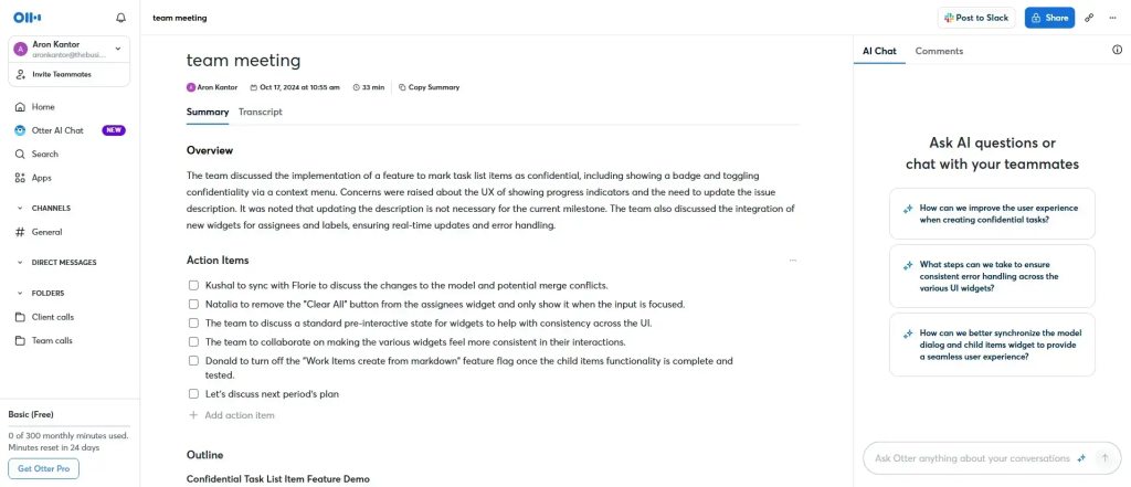 Choose Otter if your priority is inclusive, shared documentation in real time like live captions, simultaneous note-taking, and quick summaries that keep everyone aligned without post-meeting delays. It’s a strong fit for hybrid teams and organizations that value accessibility and collaborative notes over video capture or deep analytics.